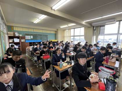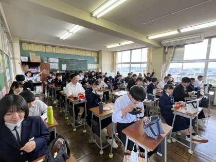今日はおいしい「お弁当」の日 3年 公開日 2022/04/23 更新日 2022/04/23 今日の興南中 今日のお昼は給食がなく「お弁当」の日。 静かに食べていますが、表情からおいしさが伝わってきます!給食もおいしいのですが、好物がたくさん入っている弁当はやはり「格別」です。 たまにはいいですね。 写真上:1組 写真中:2組 写真下:3組