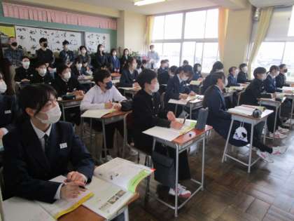 2年・授業参観 公開日 2022/04/23 更新日 2022/04/23 2年生 4月23日(土) 5限 今日はお忙しい中、にたくさんの保護者の方が授業参観や育友会総会、学年懇談会や部活動懇談会に来ていただき、ありがとうございました。 写真は担任教科の授業参観の様子です。 (写真 上:2年1組 英語) (写真 中:2年2組 家庭科) (写真 下:2年3組 数学)