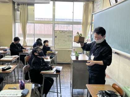1限 技術 「 最初に箱を作ってから、植物を育てます」