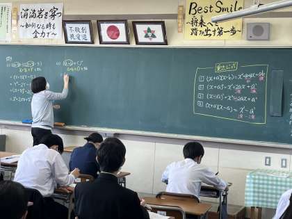 今日の授業風景 3年2組 公開日 2022/05/06 更新日 2022/05/06 今日の興南中 3限 数学 「乗法公式2ですね。どうなりますか?」 「おーにじょう、ぷらす、にしーおー、ぷらす、しーにじょう!」