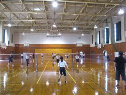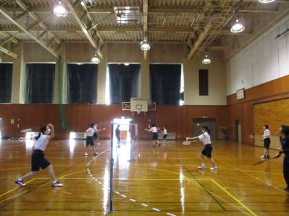 コーチ指導の下、今日もバドミントン部は練習に励んでいます。