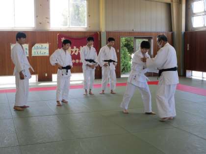 5月7日(土) 10:00 柔道部はコーチから足払いのかけ方の指導を受けています。