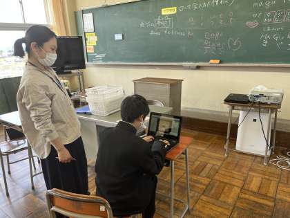 3限 クロムブックを使って、一生懸命に課題に取り組んでいます。