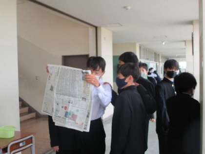 1年生・昼休み 公開日 2022/05/12 更新日 2022/05/12 1年生 5月12日(木) 昼休み 各学級に新聞が置かれています。1年生たちが記事に見入っています。 「サッカーの元日本代表監督が射水市に来ていたんだって!」 「すごいね!」 ニュースに注目することが大切ですね。