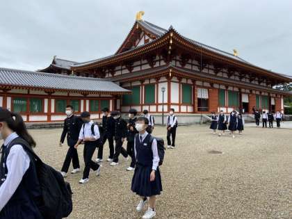 1組は薬師寺でお坊さんから説法を聞きました。