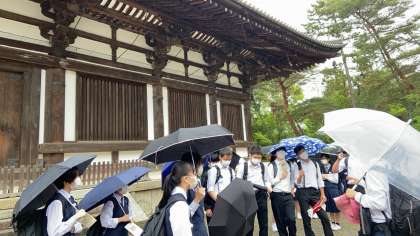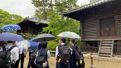 1組 唐招提寺です。 少し雨が落ちてきました。