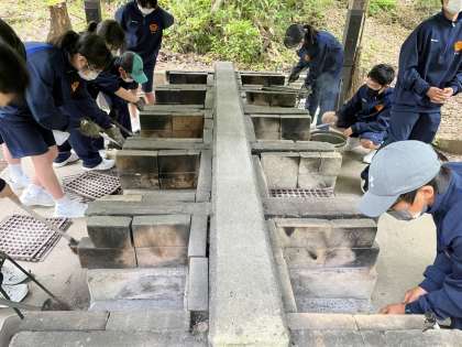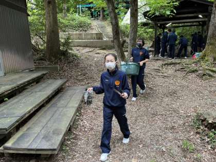 1年生宿泊学習 1日目 12:30 野外炊飯 後片付け