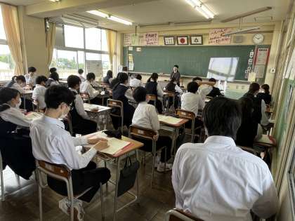 今日の授業 2年1組 総合 公開日 2022/05/20 更新日 2022/05/20 今日の興南中 「中間が終わったら事業所に訪問してもらいますが、いきなり行ってもだめです。」 「電話!」 「そうです。アポイントをとらないと行けません」