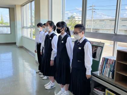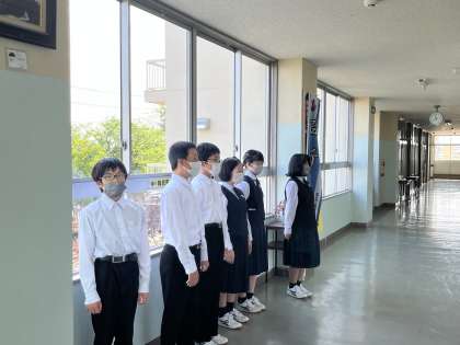 5月23日(月) おはようございます。 公開日 2022/05/23 更新日 2022/05/23 今日の興南中 5月23日(月) 週明けの今日は晴天です。予想最高気温は23度と過ごしやすい1日となりそうです。 今日から1年3組が朝ボラであいさつ運動をしています。朝から気持ちのいいあいさつが飛び交っています。 今週は25日(水)と26日(木)に中間評価があります。みなさんがんばりましょう。