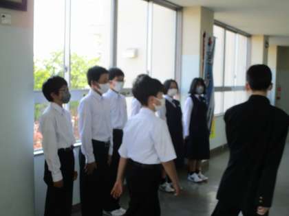 5月24日(火) 朝 1年3組・朝ボラ 公開日 2022/05/24 更新日 2022/05/24 1年生 5月24日(火) 7:55 今週の朝ボランティア担当は「1年3組」です。 今日は、校内各所で登校する生徒にあいさつをします。 「おはようございます!」 元気な1年生らしい大きな声です!