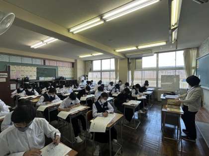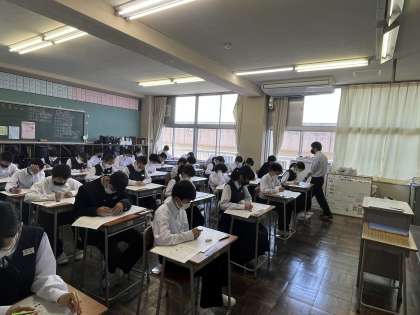 1限は英語。写真はリスニングテスト中の様子です。放送に全集中しています。