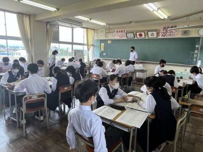 4限 理科 「ここの答え、何?」 ※グループで模範解答を作っています。