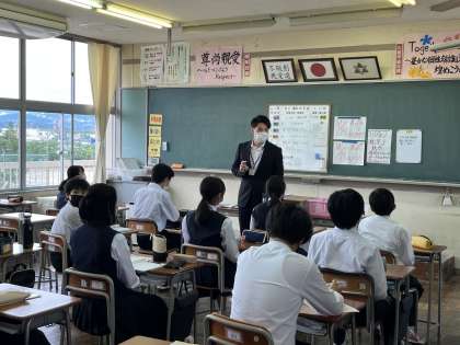 今日から教育実習が始まりました。 公開日 2022/05/27 更新日 2022/05/27 今日の興南中 今日から1名、教育実習の先生が興南中に来られました。 学級は2年3組、教科は保健体育担当です。本校の卒業生で野球をやっておられたそうです。 3週間、よろしくお願いします。