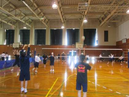 5月28日(土) 11:00 バレーボール部がサーブの練習をしています。
