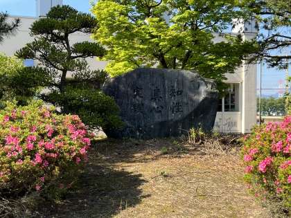 石碑には「知性 真心 実践」と書かれています。この言葉は校訓とは別の言葉です。