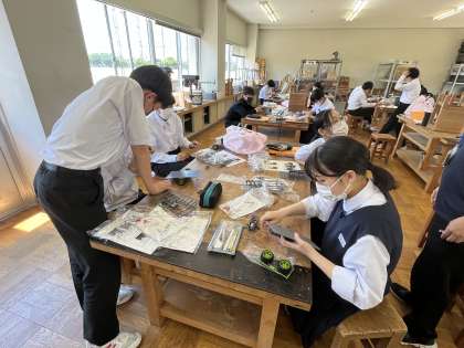 4限 技術 ※先生からロボット製作の説明を受けた後、組み立てています。