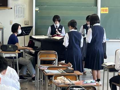 4限 音楽 ※「花」のアルトリコーダー技能テスト中です。緊張しています。