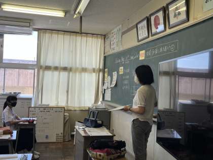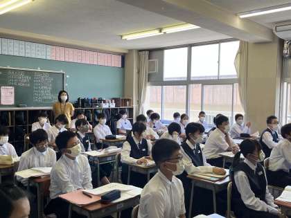 ※中間評価の振り返りをしています。みんな集中して聞いています。
