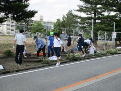 第1次フラワーロード作戦・その2 公開日 2022/05/31 更新日 2022/05/31 今日の興南中 5月31日(火) 16:30 フラワーロードの各場所に新しい肥料を入れました。 来週までに土をフカフカにします。 一週間後、草花を植える準備が整いました! (写真 上・中:作業の様子 下:山本教育後援会副会長のあいさつ)