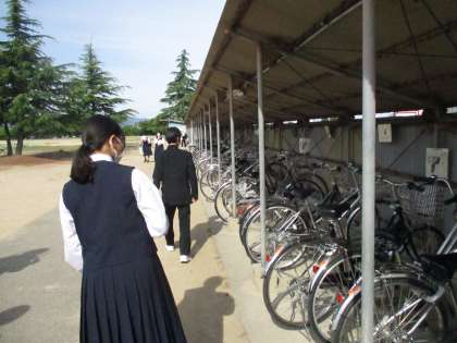 体育実践部の1年生の活動です。 自転車の鍵かけチェックをしています。
