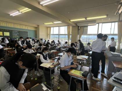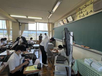 今日の授業風景 3年3組 公開日 2022/06/02 更新日 2022/06/02 今日の興南中 4限 英語 ※クロムブックで日本を紹介するメール文を作成しています。 写真下:英語科の先生2名で生徒の作った文を添削しています。