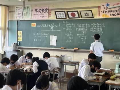 今日の授業風景 2年3組 公開日 2022/06/03 更新日 2022/06/03 今日の興南中 3限 数学 「班で教え合いながら取り組む。なぜ、どうして、どんどん聞く!」 ※課題プリントにグループで取り組んでいます。
