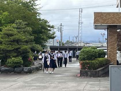 生徒はさわやかなあいさつとともに、元気よく登校しています。