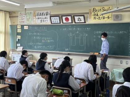 3限 理科 「電池の仕組みを知ろう」 ※集中してノートに書いています。