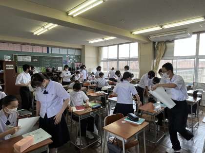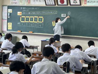 今日の授業風景 1年1組 公開日 2022/06/13 更新日 2022/06/13 今日の興南中 4限 数学 「必要なマッチ棒の数を効率よく求める方法をいろいろな人の考えを聞いて、自分の考えと比べてみてください。では動いていいよ!」