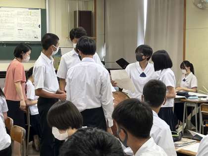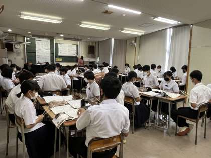 今日の授業風景 4限 公開日 2022/06/15 更新日 2022/06/15 今日の興南中 3年1組 音楽 「和太鼓の音色やリズムの特徴を感じ取り、演奏してみよう」 ※太鼓の音に合わせて、全員ばちをたたいてリズムをとっています。