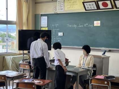 今日の授業風景 そよご級 公開日 2022/06/16 更新日 2022/06/16 今日の興南中 3限 英語 写真上 :そよご1組 カードで単語を見つけています 写真中 :そよご2組 クロムブックを使って学習しています。 写真下 :そよご2組 問題をホワイトボードに書き出しています。