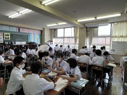 最後に1年2組で授業をされました。とても生徒も先生も楽しそうでした。