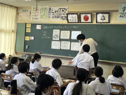 今日の授業風景 1年2組 教育実習の先生の最終授業です。