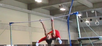富山市総合選手権大会(体操) 公開日 2022/06/17 更新日 2022/06/17 今日の興南中 6月17日(金) 11:30 体操競技は、富山市体育館で行われました。 興南中の選手は鉄棒の部で1位になりました! また、総合の部でも2位になりました。 (写真 鉄棒競技の様子)