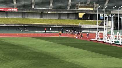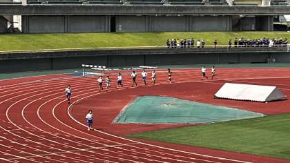 陸上競技の今日の最終種目は、1年男子1500mです。 最後まであきらめずに走りました。