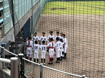 大沢野野球場 第2試合 対新庄中 3回表現在、0-1です。頑張れ、興南中