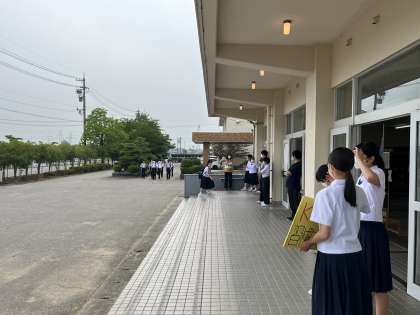 昨日から朝ボラは2年1組 元気のいいあいさつが聞こえてきます。