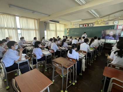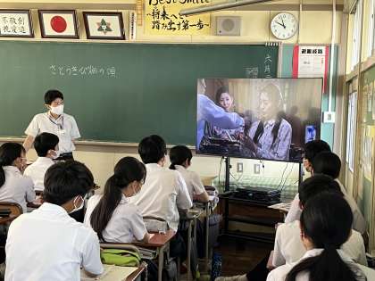 ※「『さとうきび畑の唄』を視聴しています。生徒は食い入るように見ています。