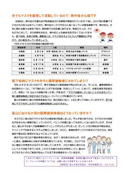 富山市立学校 新型コロナウイルス感染症対策検討会議だより Vol.19