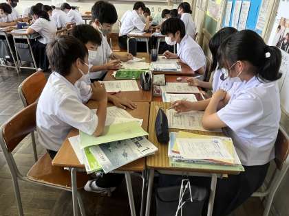 4限 理科 ※グループで密度の計算問題を解いています。