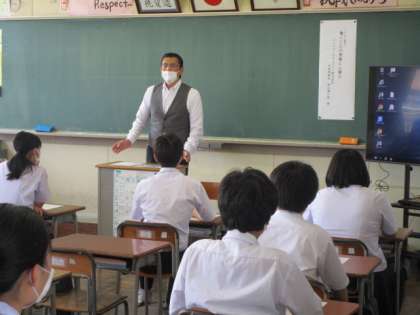 2年生は、来週7月4日から「社会に学ぶ『14歳の挑戦』」を実施します。講師の方々には「働くことの意義」や「働く上で大切なこと」をご自身の体験を基にお話いただきました。生徒はメモをとりながら、真剣に聞き入っていました。