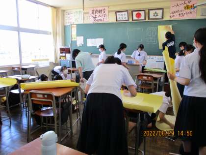 期末評価が終わった今日の放課後、「14歳の挑戦」実行委員会や体育大会の実行委員や団リーダーに立候補した人たちの集まりがありました。