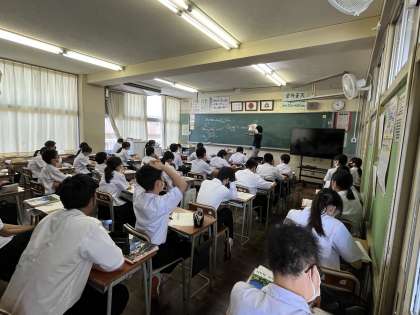 「byの後には(乗り物)を付けます。じゃあバスで来るのは?」