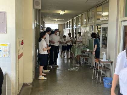 いつもの清掃場所とは違う場所で、メンバーも学年を混ぜた班になっています。暑い中での活動となりましたが、生徒は楽しく、一生懸命に奉仕活動を行っていました。学校全体が一つになったようでした。