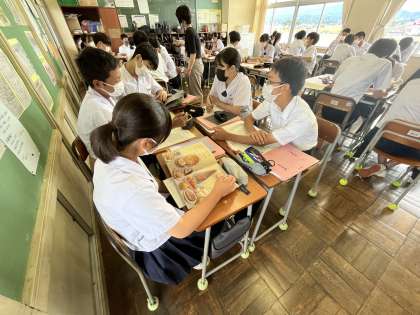 今日の授業風景 3年1組 公開日 2022/07/05 更新日 2022/07/05 今日の興南中 2限 家庭 「幼児が喜ぶ絵本をつくろう」 ※グループになって絵本のサンプルを見ながらどんな絵本がいいか話合っています。