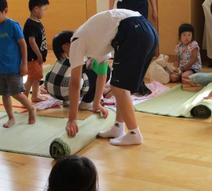 2年生・社会に学ぶ「14歳の挑戦」 公開日 2022/07/05 更新日 2022/07/05 2年生 くまのこども園 お昼寝が終わっても、なかなか起きない子供たちを起こしたり、布団をたたんだり、着替えのお手伝いをしたりしていました。