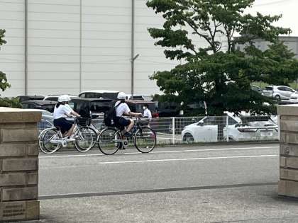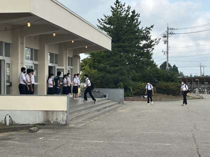 今週、2年生は『14歳の挑戦』で登校しないのですが、学校前に集合して事業所へ向かう2年生の姿が見られました。(写真下)