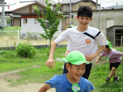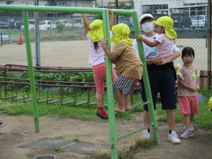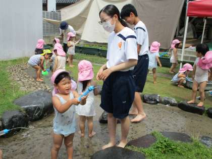 7月6日(水) 午前中は庭で水遊びをして園児たちと一緒に楽しみました。