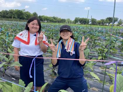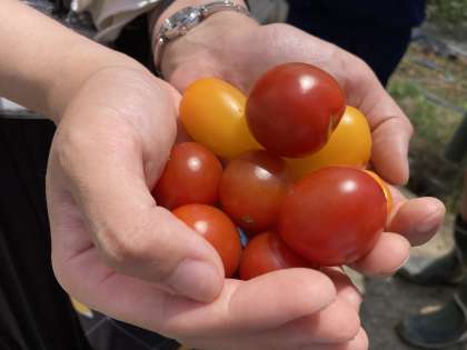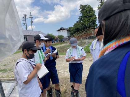 2年生「社会に学ぶ『14歳の挑戦』」グリーングラス・ニットー 公開日 2022/07/07 更新日 2022/07/07 14歳の挑戦 暑い中、農作業に取り組んだり、品種の説明を聞いたりしています。甘いトマトをいただきました。