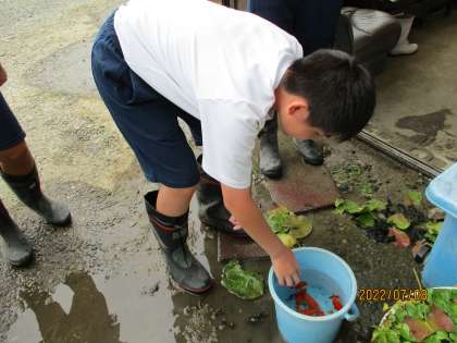 今日もビニールハウスのところで、ナスの茎を取ったり、金魚の水槽を洗ったりしました。